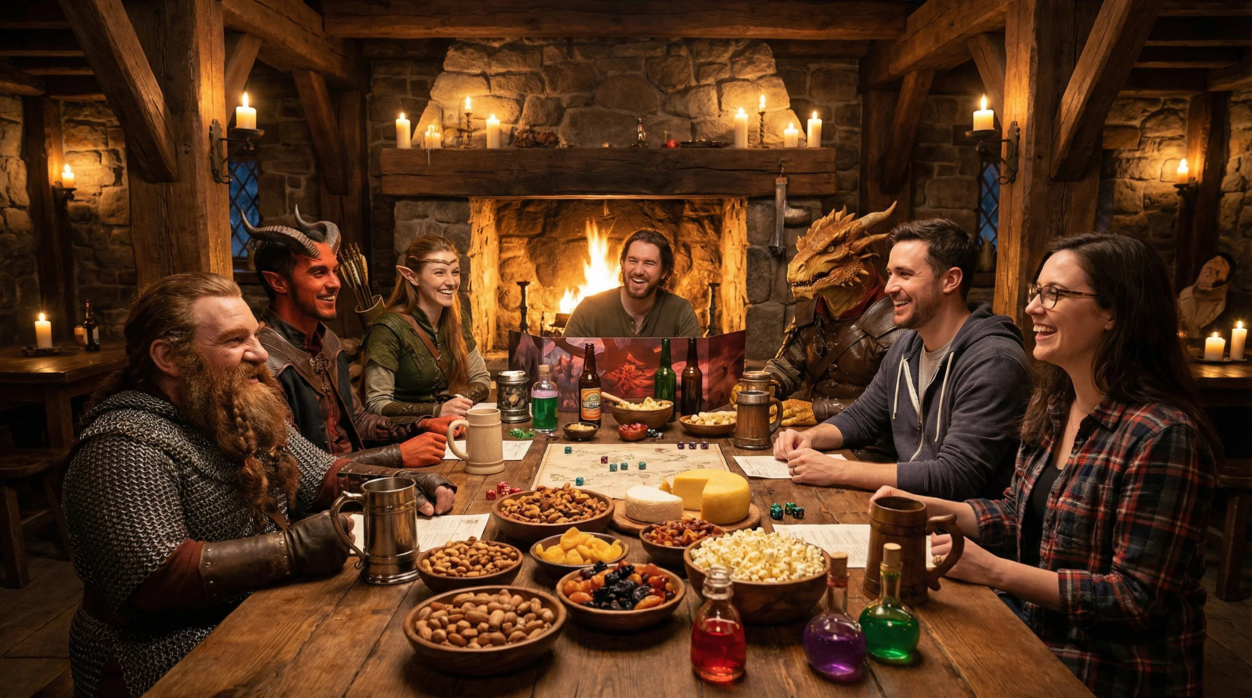 We were also inspired by a classic game-night question: what should players bring to share? There is nothing wrong with a bag of potato chips, a six-pack, pizza, or homemade treats. TTP snacks and beverages are designed to be the easy, on-theme choice for your next session. Our first line, like Dragon Roasted Peanuts and Tavern Mix, starts with familiar tavern-style snacks. As we scale, we plan to introduce more unique foods and drinks with built-in sensory surprises. Think flavor-changing, popping, fizzing, melting, sweet-and-spicy creations that feel like they came straight from a fantasy world.